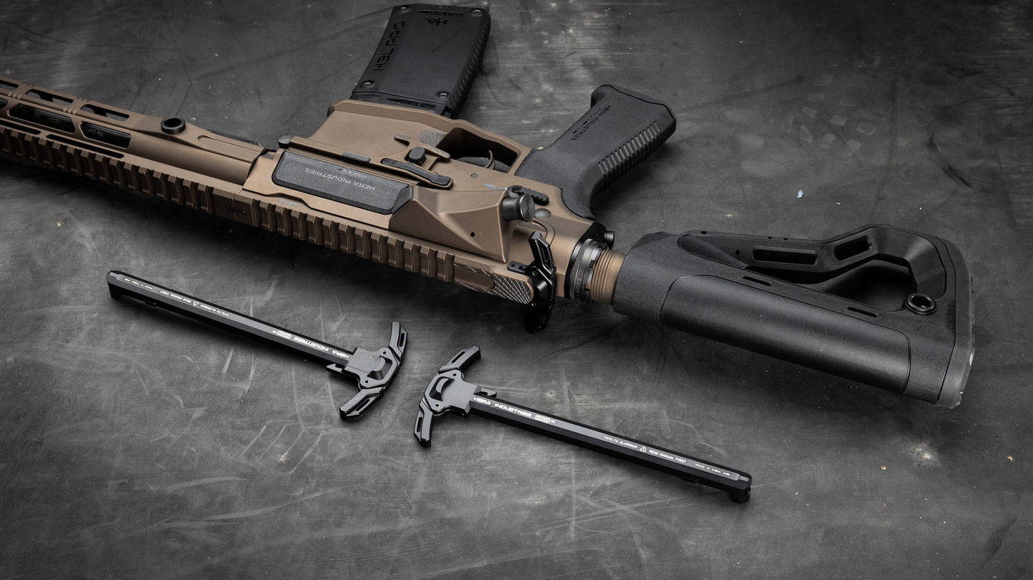Alle HERA AR15 Modelle so wie AR10 Modelle verfügen über uneingeschränkt beidseitige Bedienbarkeit sowohl der Sicherung als auch des Verschlussfangs. Des weiteren sind alle AR15 und AR10 Modelle mit einem beidseitigen Magazinknopf ausgestattet.