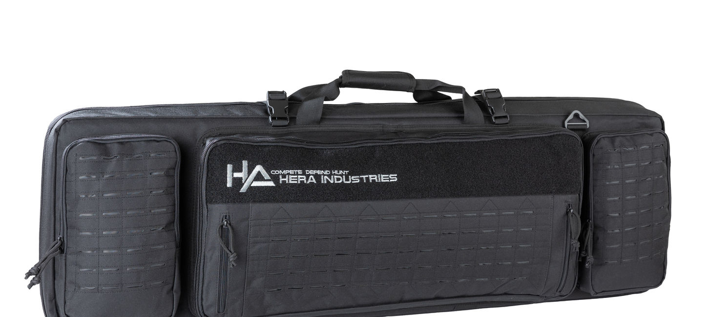 Die Hera Rifle Bag Short ist eine moderne Transporttasche für Langwaffen bis ca. 36“, welche durch hochwertiges 1000D Nylon für professionellen Schutz der Waffen durch wasserabweisende und abriebfeste Eigenschaften sorgt. Die Seitenteile sind gepolstert, um Schlag- und Stoßschäden an den zu transportierten Waffen zu vermeiden. Zudem können die Waffen im Innenfach durch Halterungsriemen fixiert werden. Ein individuelles Trageerlebnis wird durch die Optionen des längenverstellbaren, abnehmbaren Tragegurtes, der zwei gepolsterten Schultergurte sowie zwei Tragegriffe gewährleistet. Drei Außentaschen mit Lasercut Molle-System zur individuellen Bestückung bzw. für modulare Erweiterungen bieten extra viel Stauraum. 2-Wege-Reißverschlüsse bzw. „Lock-Zipper“ sorgen für einen schnellen und einfachen Zugriff und bieten die Option zur Schlossbefestigung. Erhältlich in Schwarz und Sandfarben.