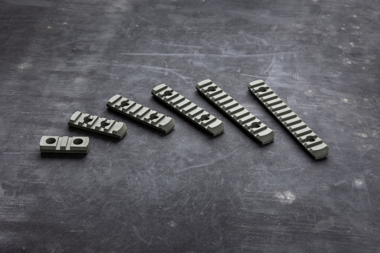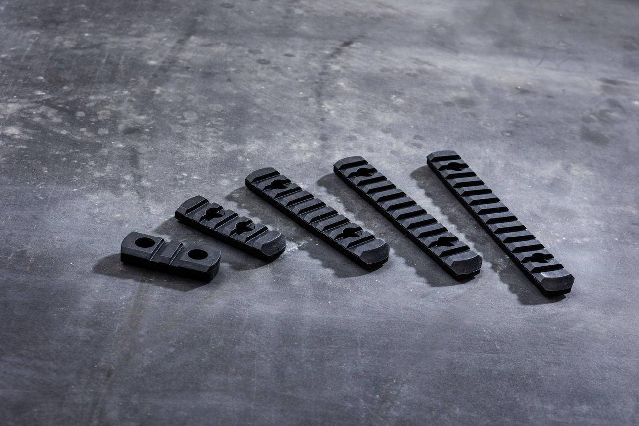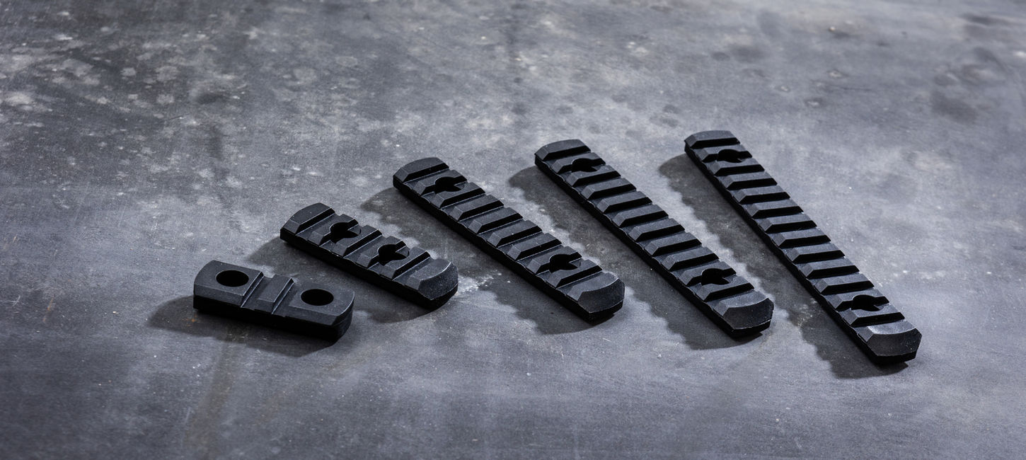Die Außenkontur der kurzen Rail ist exakt den Maßen unseres HFG und HFG DIY nachempfunden. Durch diese lassen sich unsere Frontgriffe nahtlos auf M-Lok Slots befestigen.